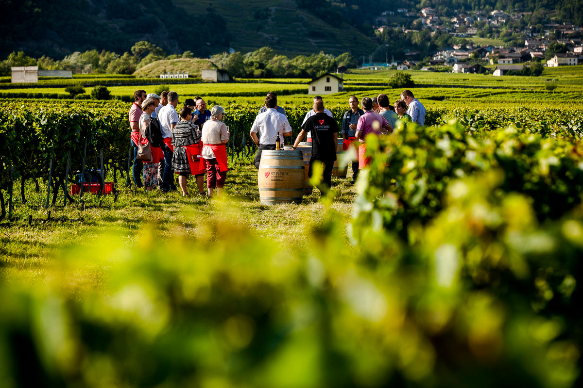 Wir treffen uns am Bahnhof St-Pierre-de-Clages um 9 Uhr (oder um 9:30 Uhr im Weinkeller), um gemeinsam in die Weinberge aufzubrechen. Dieser Spaziergang (ca. 15 Minuten) bietet die Gelegenheit, Ihnen unsere Geschichte zu erzählen und gleichzeitig die Arbeit im Weinberg zu erklären. Anschließend setzen wir die Theorie direkt im Rebberg in die Praxis um. Danach begeben wir uns in den Keller für eine Besichtigung und die Fortsetzung der Weinlesearbeiten. Dann ist es Zeit für das „Valaiser Casse-croûte“ (Kartoffeln, Käse, Fleisch …). Natürlich wird der gesamte Tag von Degustationen unserer verschiedenen Weine begleitet! Der Tag endet gegen 15 Uhr.